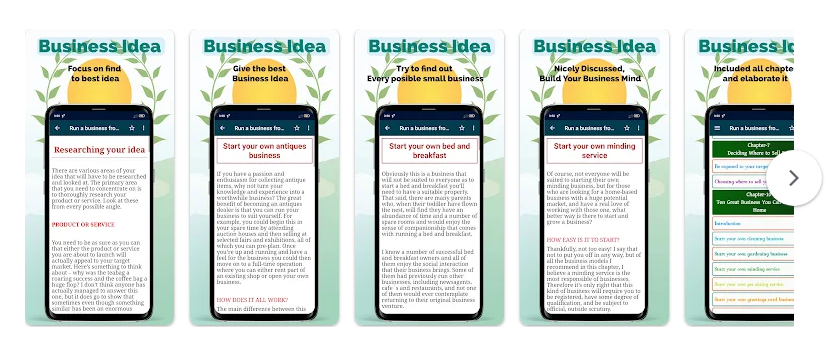 يمثّل هذا التطبيق دليلاً متكاملاً لكل شخص يفكّر في إطلاق مشروع صغير، سواء من المنزل أو عبر الإنترنت، . فهو يضم العديد من الأفكار السهلة التنفيذ، إلى جانب شرح دقيق يوضّح كيفية تحويل هذه الأفكار إلى واقع.