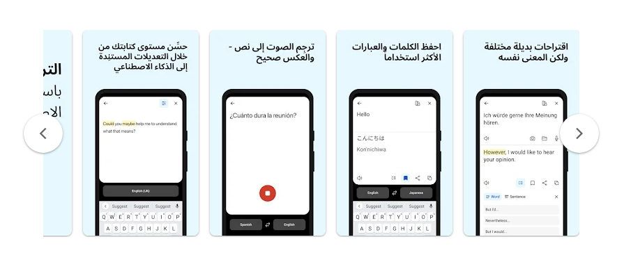 كما يعزز تجربة الاستخدام عبر حفظ الترجمات المفضلة وتوفير سجل كامل يمكن الرجوع إليه بسهولة، إضافة إلى ميزة التحويل الصوتي للنصوص المكتوبة بحروف غير لاتينية، مما يسهم في تبسيط قراءتها وفهمها.