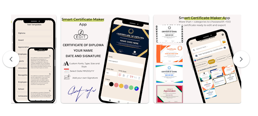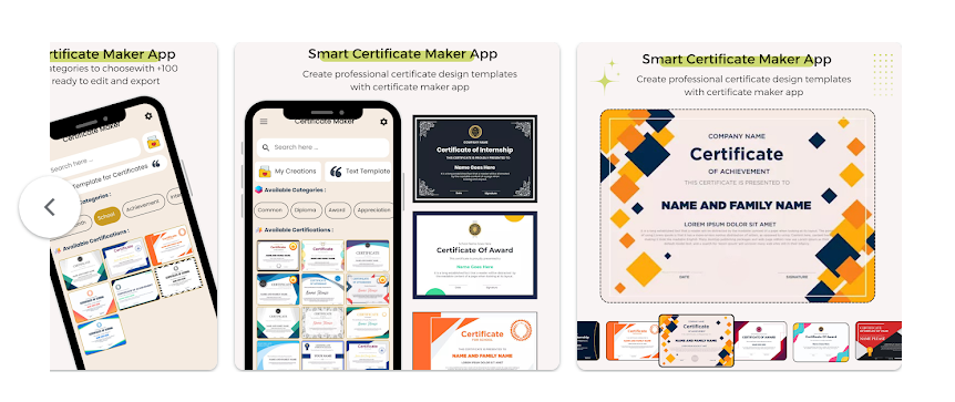 ويوفّر تطبيق Certificate Maker & Designer تجربة مبسطة لإنشاء الشهادات الاحترافية خلال وقت قصير، حيث يجمع بين سهولة الاستخدام ومرونة التخصيص.