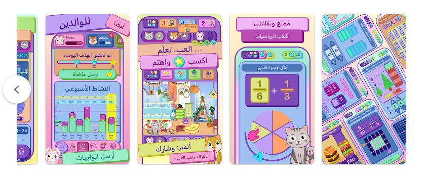 ومن أبرز ما يميّز التطبيق اعتماده على ألعاب سريعة وتفاعلية تقدّم تغذية راجعة فورية وتشجيعاً مستمراً، الأمر الذي يساعد الطفل على اكتشاف أخطائه وتصحيحها بشكل لحظي دون الشعور بالإحباط. كما يتضمن نظام مكافآت ذكي قائم على جمع النجوم والعملات وفتح عناصر الزينة وبناء عالم افتراضي للحيوان الأليف، وهو ما يعزّز الاستمرارية ويحفّز التقدّم عبر مستويات تعليمية متدرجة تحاكي أسلوب الألعاب بدلاً من الواجبات التقليدية.