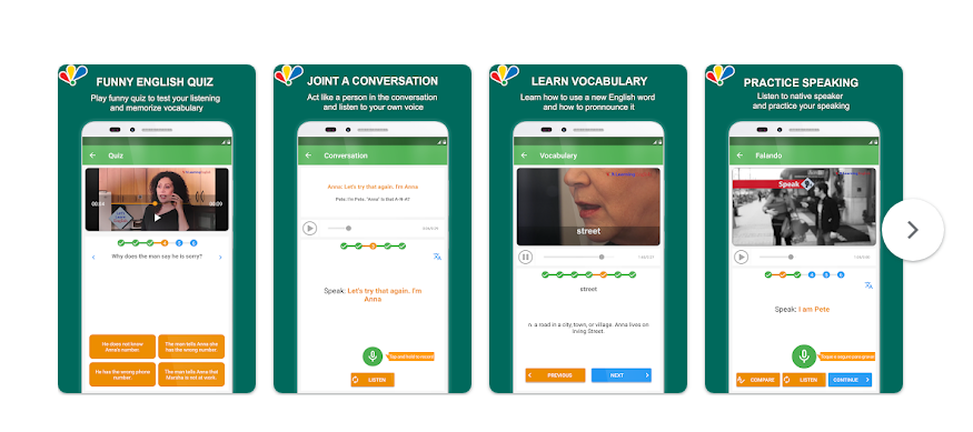 كذلك، يمنحك التطبيق فرصة للتدرّب على النطق والمحادثة، إذ يمكنك المشاركة في حوارات صوتية وتمثيل الأدوار، مما يعزّز ثقتك بنفسك ويجعلك تشعر وكأنك تتحدث فعلاً لا تتعلم فحسب.