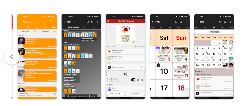 يقدّم تطبيق “Germany Calendar” تجربة مميزة لتنظيم وقتك بكل سهولة ومرونة، حيث يمكنك من خلاله الاطلاع على جميع العطل الرسمية سواء على مستوى الدولة أو حسب الولاية التي تقيم فيها.