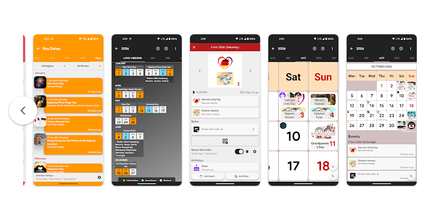ولا يقتصر التطبيق على عرض العطل فحسب، بل يعرض أيضاً مواعيد المهرجانات والفعاليات الثقافية مثل الحفلات الموسيقية والأسواق التقليدية، ليضمن لك عدم تفويت أي مناسبة مهمة.