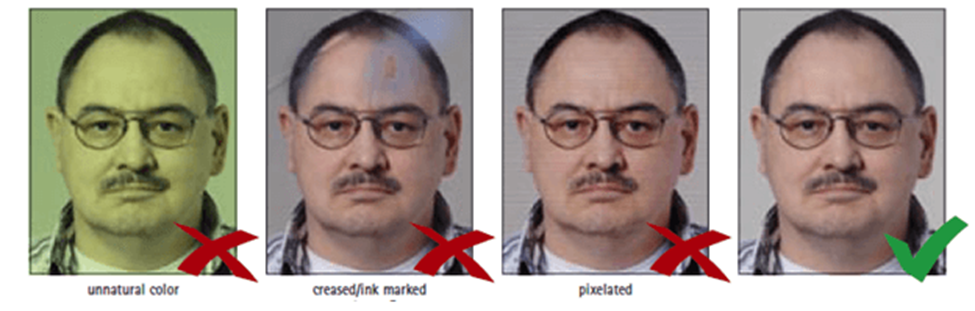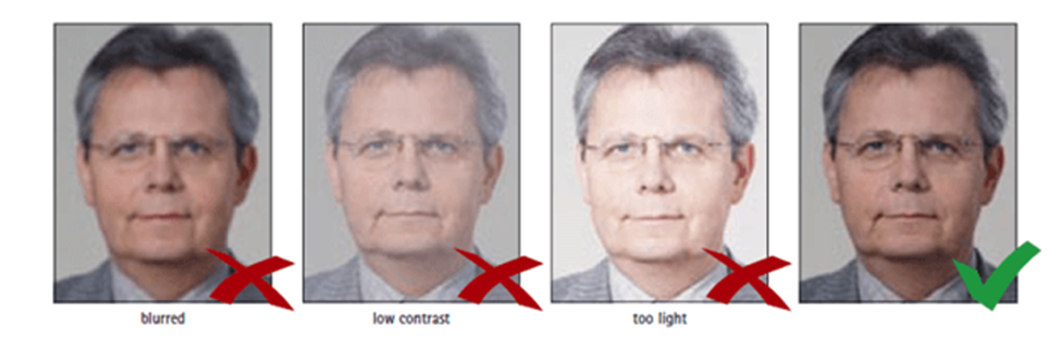 أهم ما يطلب أن تكون الإضاءة في الصورة منعكسة على الوجه بالشكل الذي يظهر معه الوجه واضح بكل تقاسيمه بدون أن يكون عليه ظلال أو إضاءة منعكسة ، أو عيون حمراء.