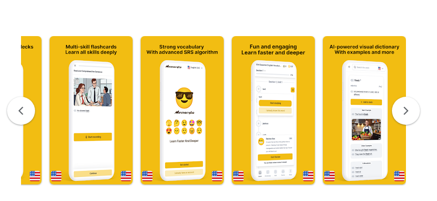يتميز التطبيق بالبطاقات التعليمية البصرية، وهي تعتمد على ربط الكلمات بالصور، مما يسهل تذكّرها ويجعل التعلم أسرع وأكثر فعالية. هذه الطريقة تعزز الفهم العميق للمفردات.