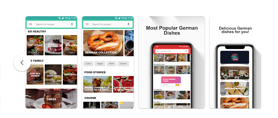 يأخذك هذا التطبيق في رحلة عبر أطباق المطبخ الألماني التقليدي التي تحمل عبق التاريخ، من النقانق الشهيرة إلى مرق اللحم الغني، مروراً بحلويات تدفئ القلب برائحتها الزكية من القرفة والفانيليا. ويمكنك تصفح وصفات الإفطار، الغداء، والعشاء، بالإضافة إلى المقبلات، الشوربات، السلطات، المشروبات، وحتى أطباق خاصة بالدايت والنباتيين.